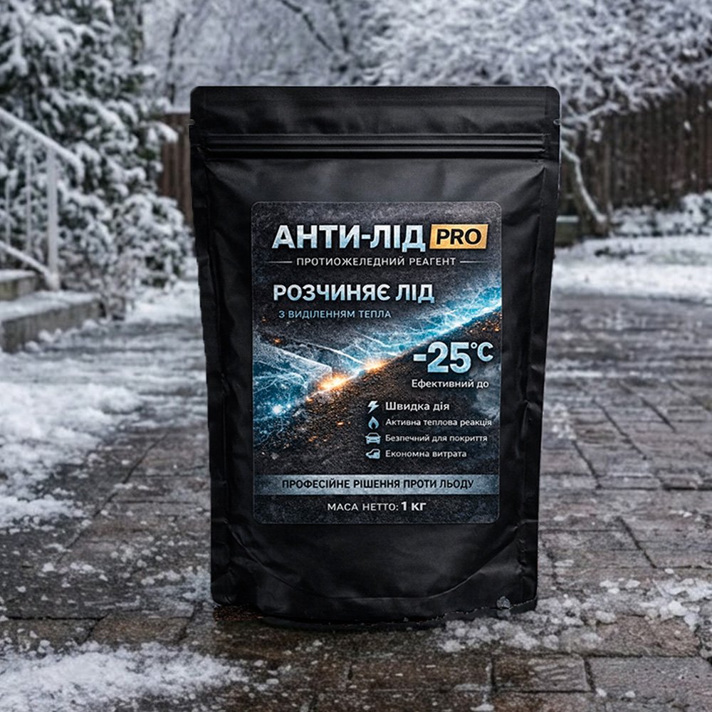 Анти-лід PRO — протиожеледний реагент для посипання зовнішніх поверхонь. Після нанесення починає працювати, руйнуючи зчеплення льоду з покриттям та зменшуючи слизькість. Зручна упаковка із zip-замком — легко дозувати та зберігати.