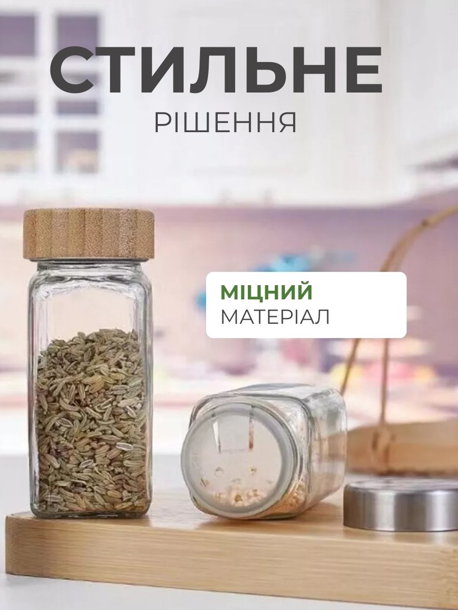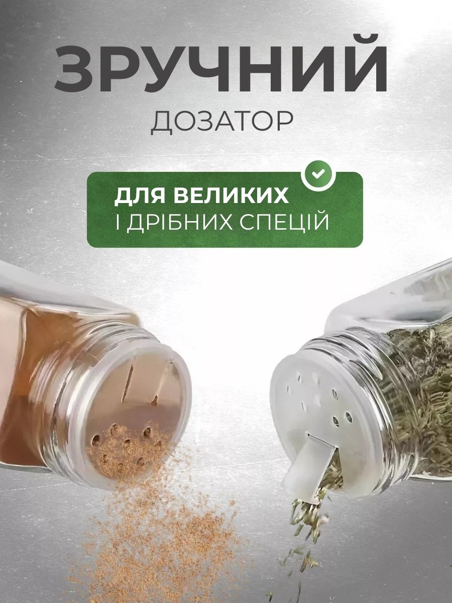 Елегантні ємності для спецій виготовлені з міцного скла, яке не тільки безпечне для зберігання продуктів, а й прослужить вам довгі роки.