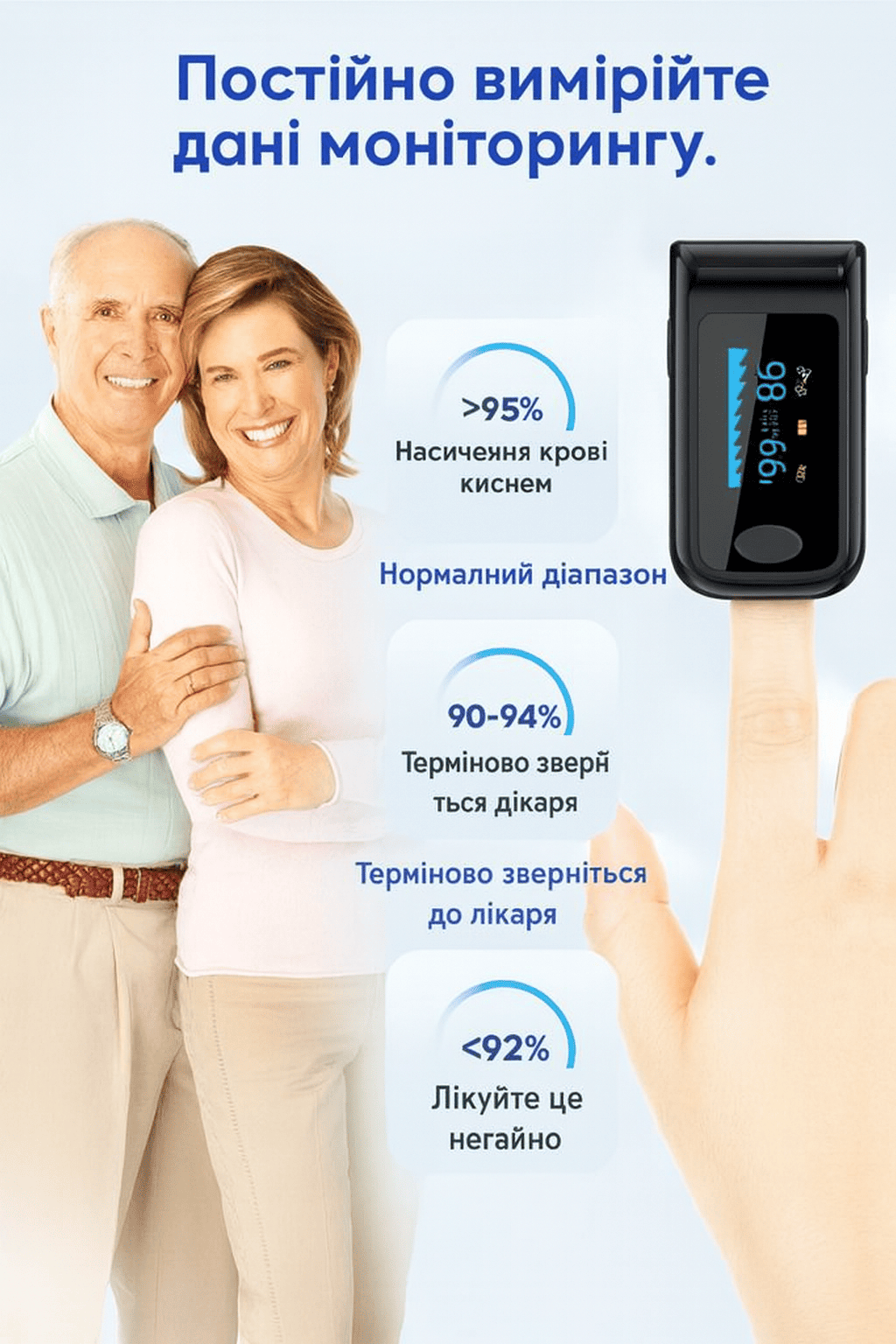 Він дає точні результати всього за кілька секунд і дозволяє вам контролювати свій стан у будь-який момент — вдома, у подорожі або на роботі.