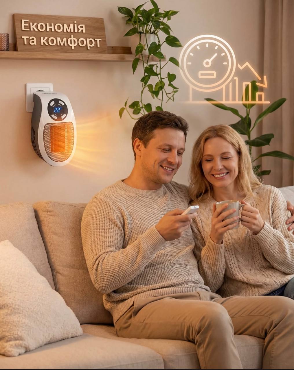 Він працює без зайвих кабелів, просто підключається безпосередньо до розетки та займає мінімум місця, що робить його ідеальним для маленьких кімнат і навіть для подорожей.