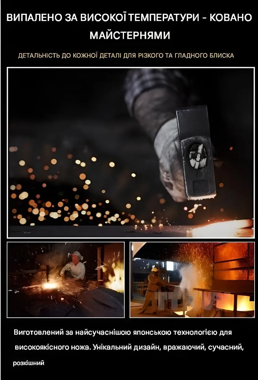 Ручне кування, полірування та загартування — кожен ніж проходить понад 6 годин обробки для досягнення ідеального результату.
