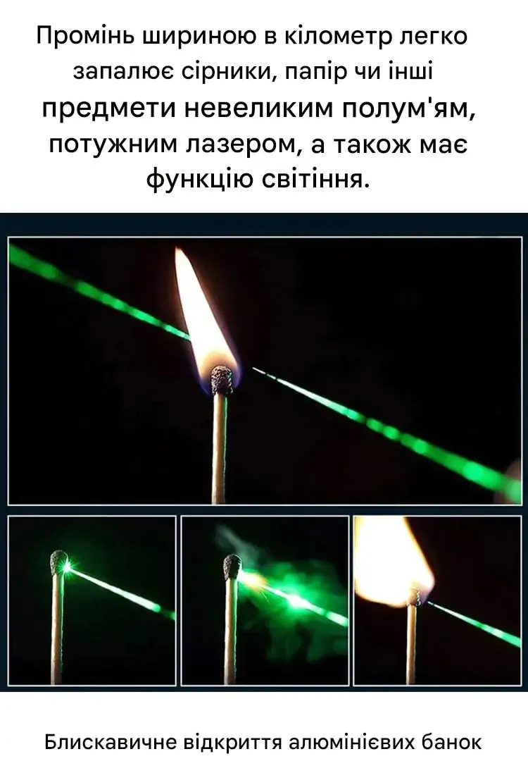 Відмінний пристрій! Лазер без зусиль ріже матеріали та дає яскравий промінь на великій відстані. Ідеально підходить як для самооборони, так і для активного дозвілля. Абсолютно виправдовує свою ціну!