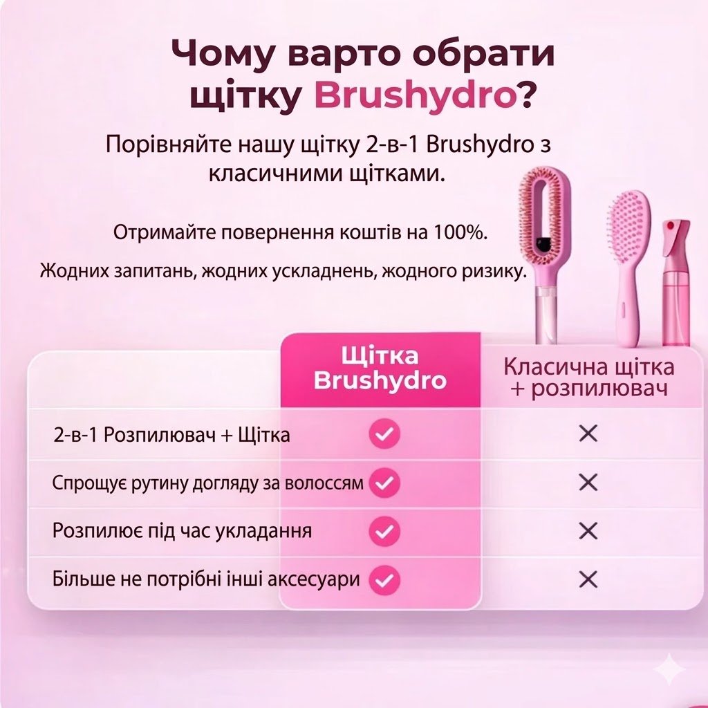 Останнє замовлення: 40 хв томуBrushydro: щітка-спрей 2-в-1 – розплутує та зволожує 🔥