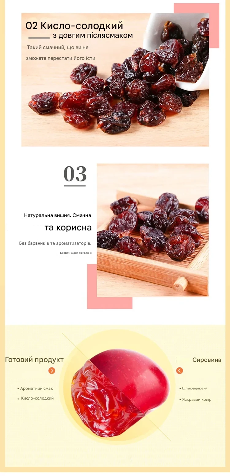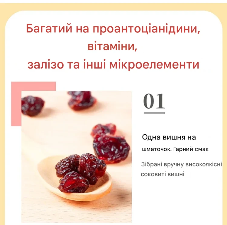 Приємно здивована! Справжній смак вишні, не пересушена, дуже корисний перекус