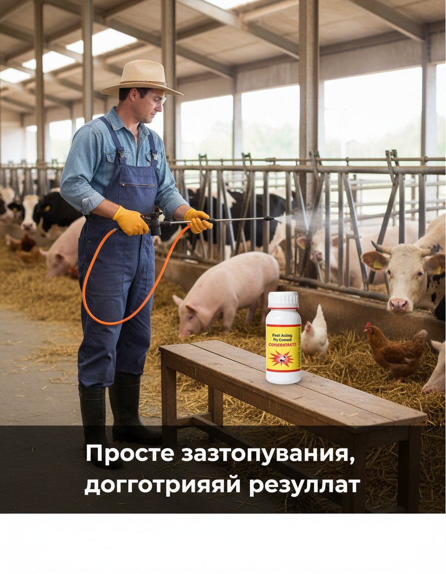 Забудьте про щоденну боротьбу! Наш концентрат забезпечує швидке знищення комах і надає захист до 6 місяців після одного застосування. Це не тільки економить ваш час та зусилля, а й гарантує постійне зниження патогенів у тваринницьких приміщеннях. Використання «Захисту Ферми» — це інвестиція в здоровʼя ваших тварин та спокій вашої родини. Не відкладайте — залишилось лише кілька партій за спеціальною ціною, щоб кожен міг спробувати ефективність нашого біозасобу!